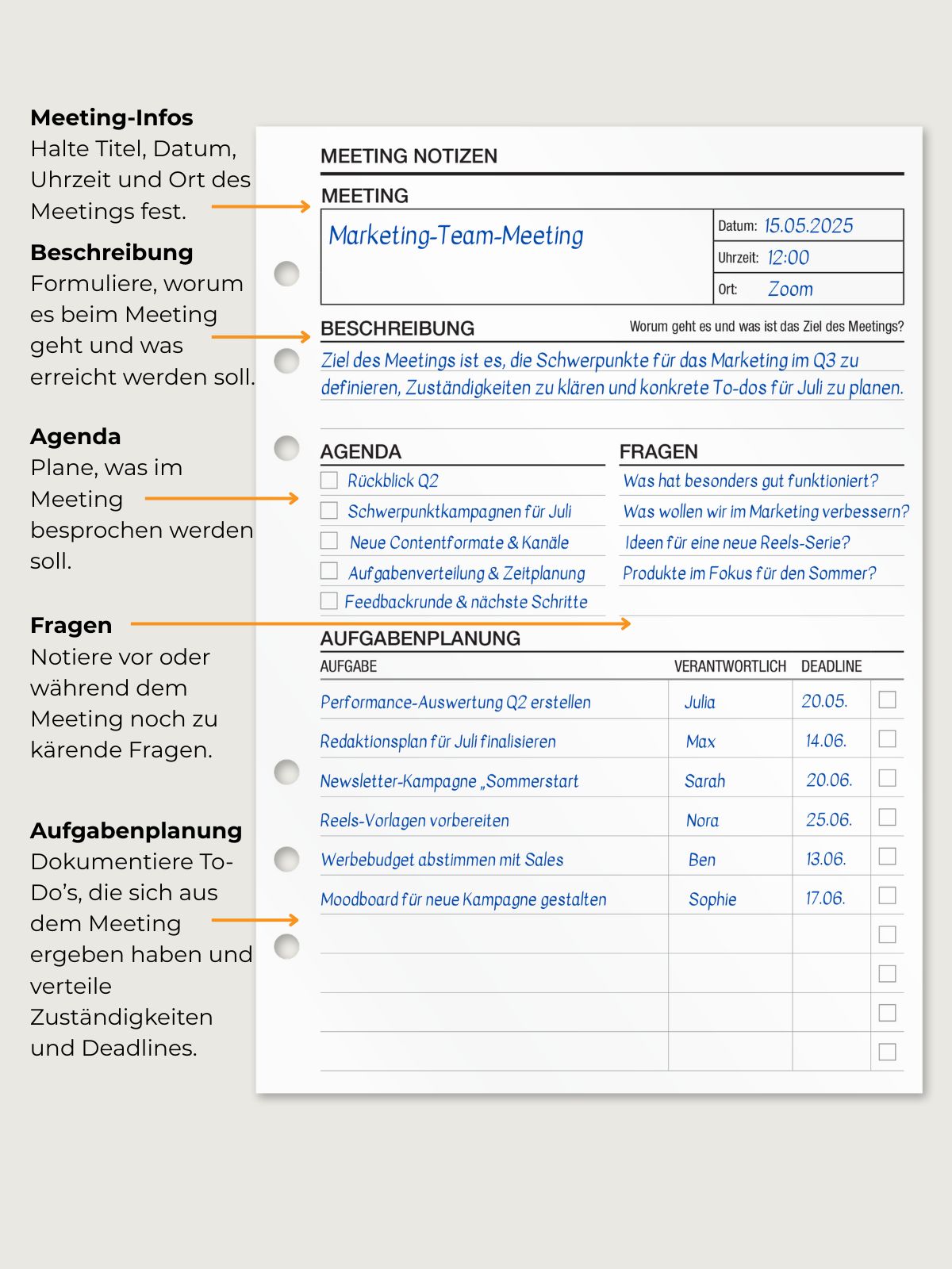 Meeting Notizen - Einlagen (Deutsch)