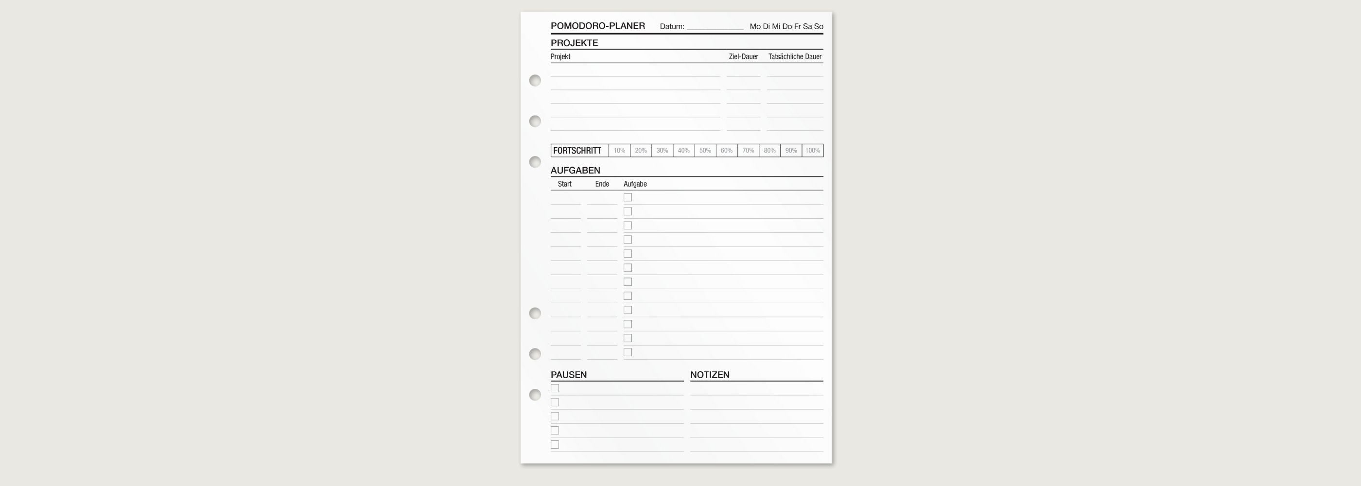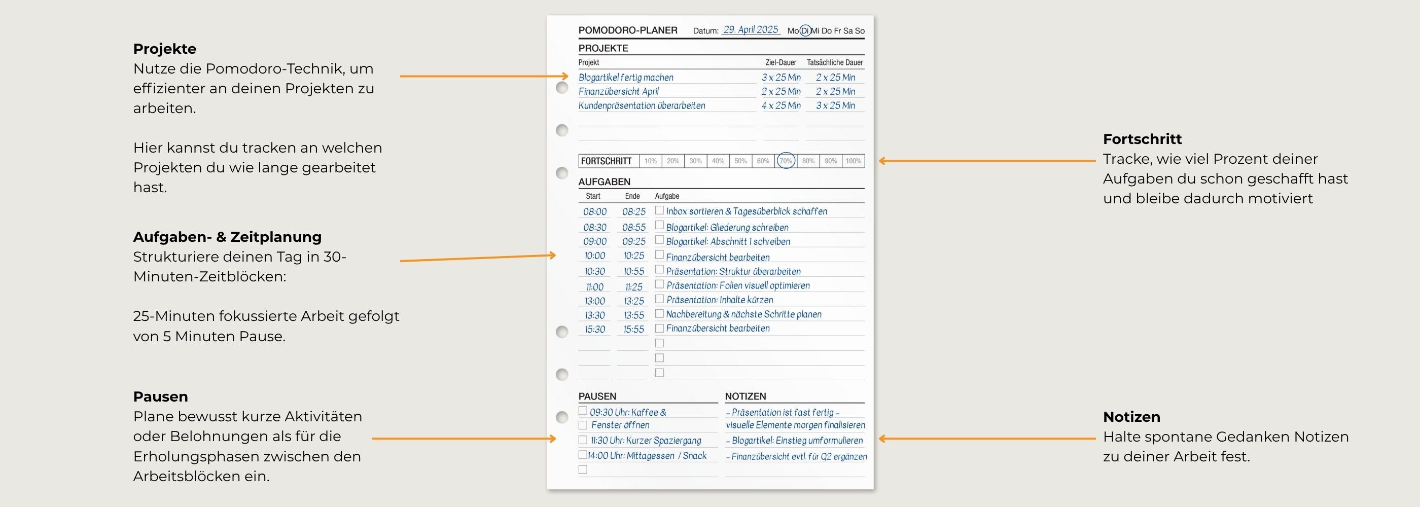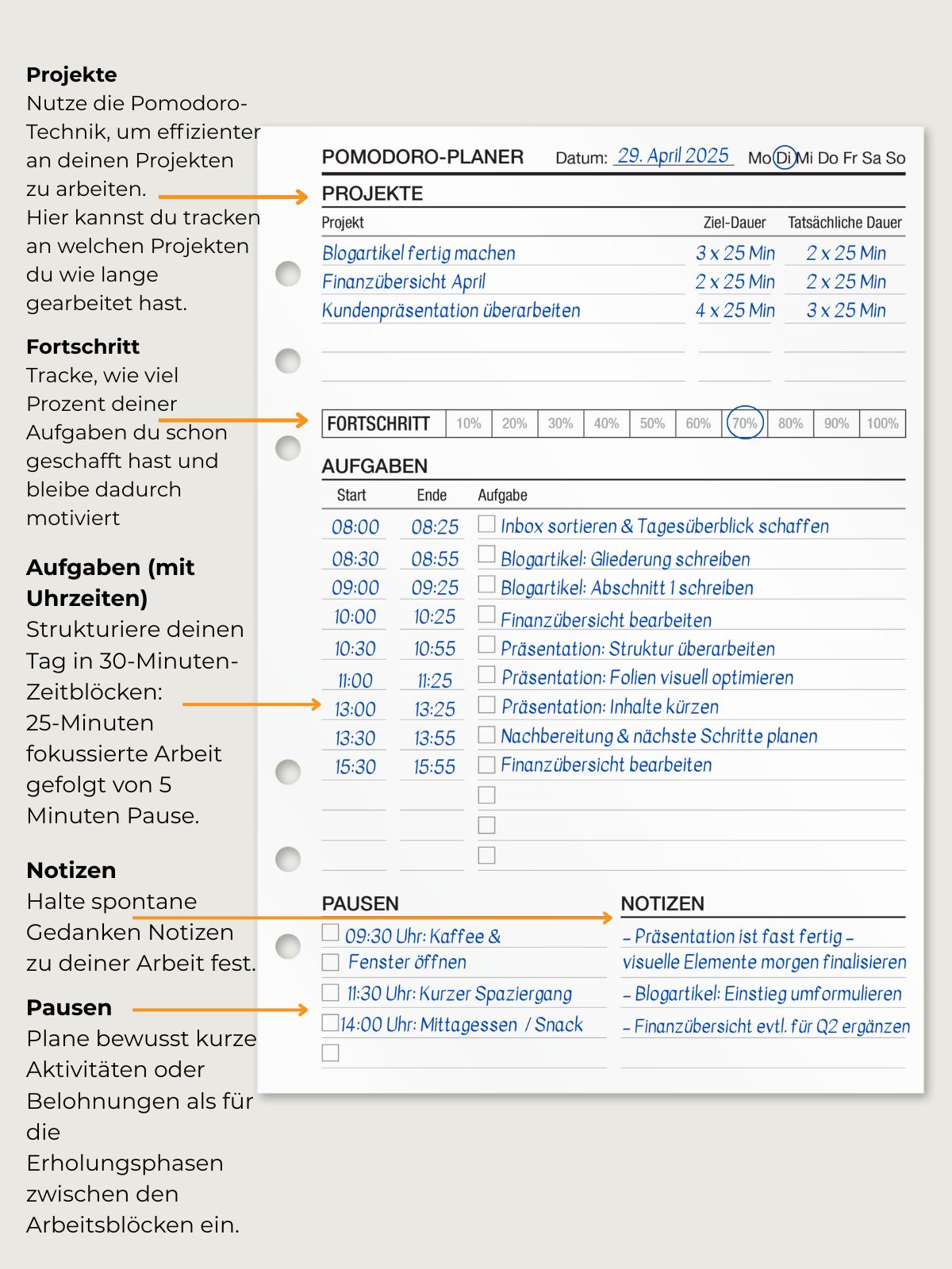 Nutze die bewährte Pomodoro-Technik, um konzentrierter und effizienter zu arbeiten und deine Produktivität zu steigern. Perfekt für alle, die mehr schaffen möchten – ohne dabei auszubrennen.