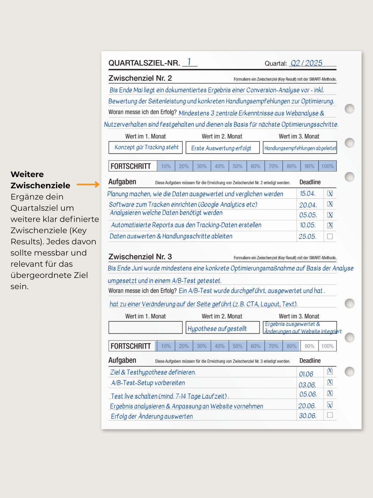 Brich deine langfristigen (Jahres-) Ziele in erreichbare Quartalsziele runter, um sie strukturiert und planbar zu erreichen.